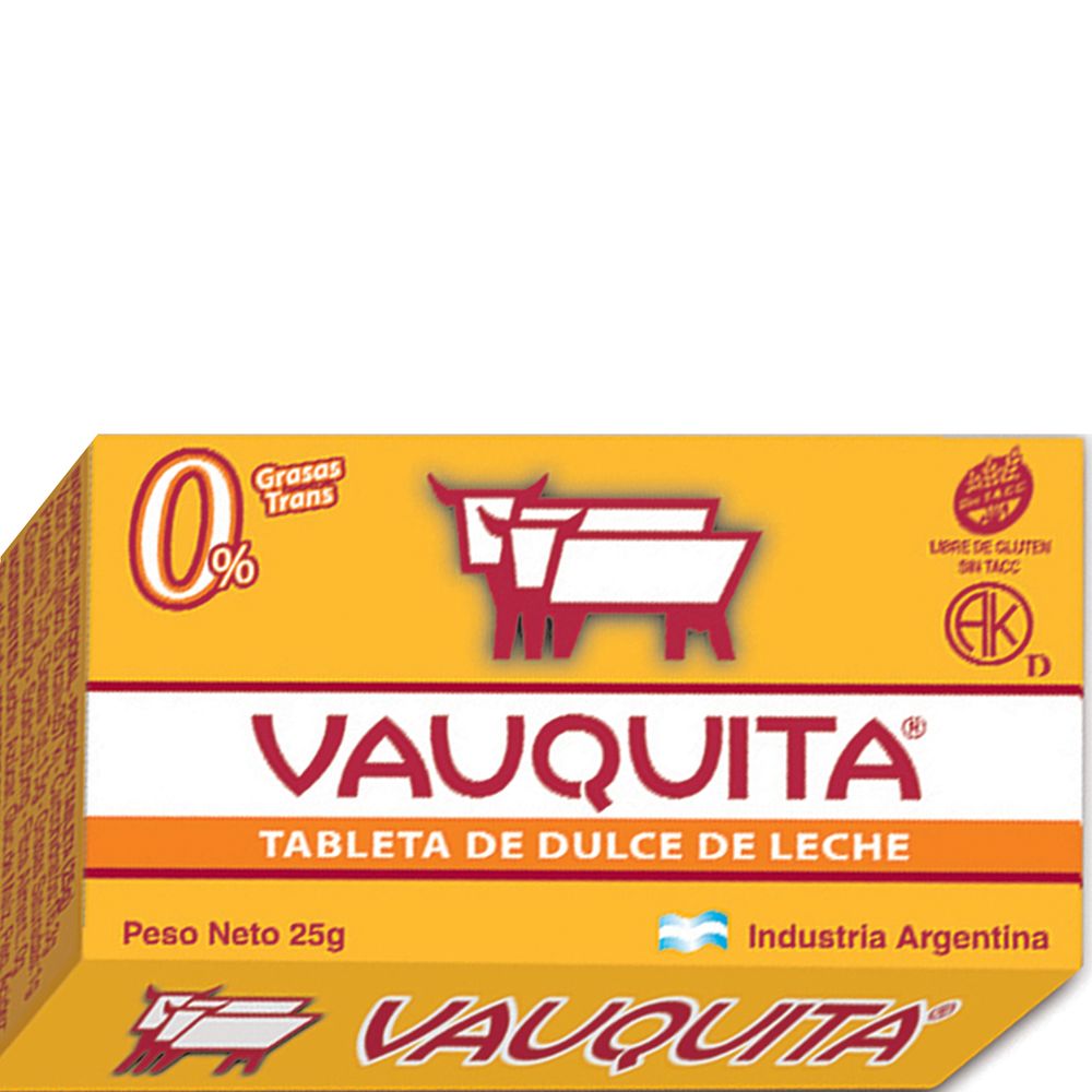 Vauquita Dulce de Leche tastes, smells, and feels like Argentina! These milk caramel bars are unique but have a formula: practical + yummy = AWESOME!. Vauquita Tabletas de Dulce de Leche. Milk Caramel Bars. Gluten-free. Pack of 4. Each bar is 0.88 oz (25 g), for a total of 3.52 oz (100 g). Contains milk.